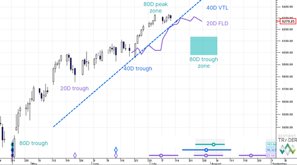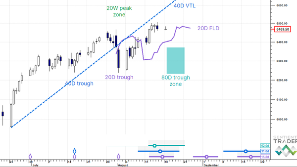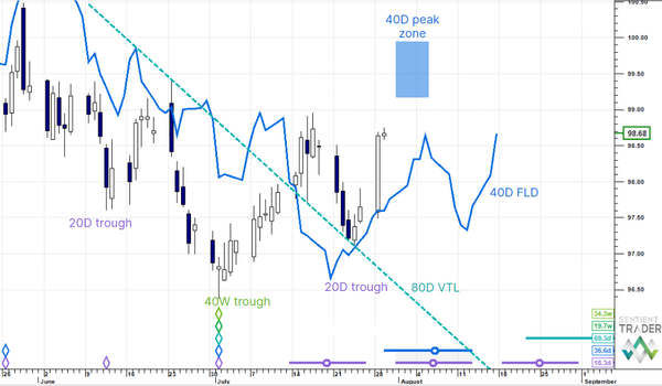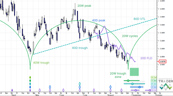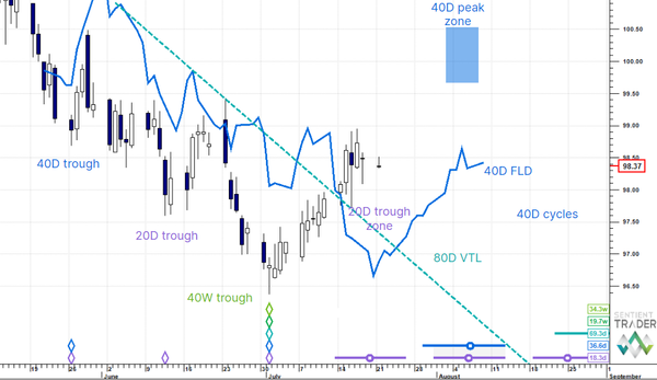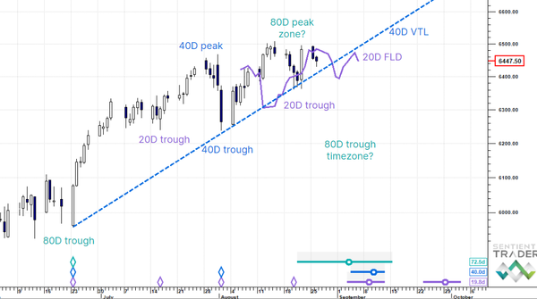 Gold, EURUSD both in 40 day cycle peak zone. US Dollar, Oil, Copper, USDJPY forming pro-trend 20 day cycle troughs. SPX E-Minis, 10 Year Treasuries at 80 day cycle peaks. Nikkei to 40 day cycle trough zone. Bitcoin 80 day cycle trough forming. ...
