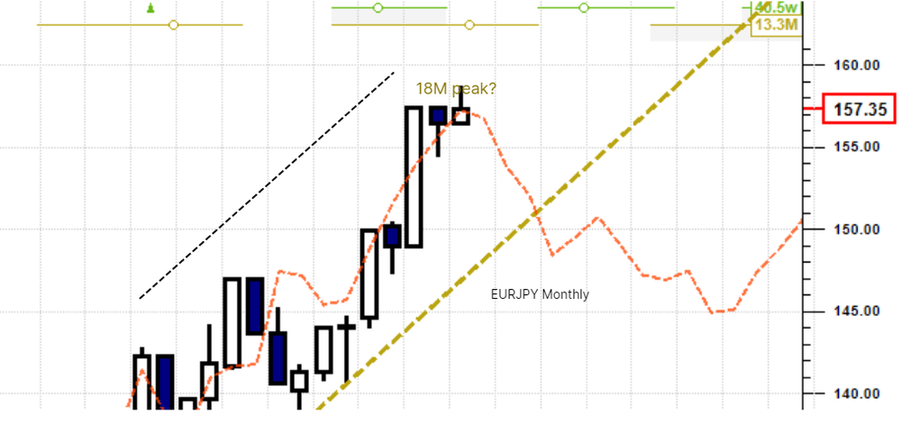 EURJPY - 18 month peak zone? Precarious price action, limited upside.