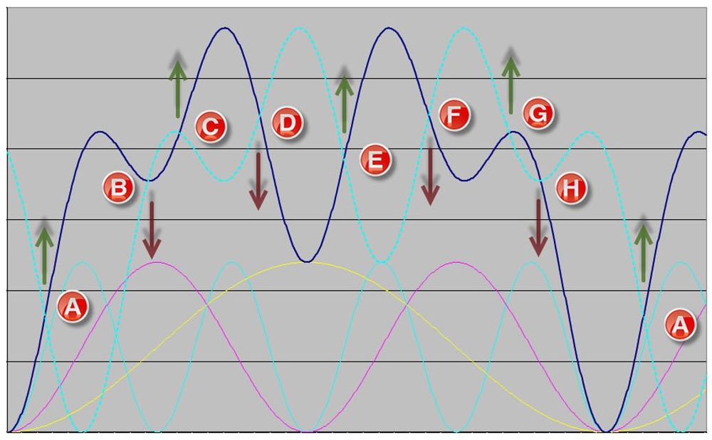 Waves in price movement are phased so as to cause simultaneous troughs wherever possible.