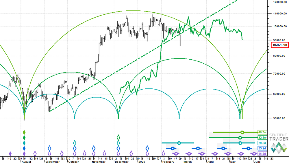 The 20-week VTL and FLD have been broken to the downside. The next cycle point of interest is the 40 week cycle trough.