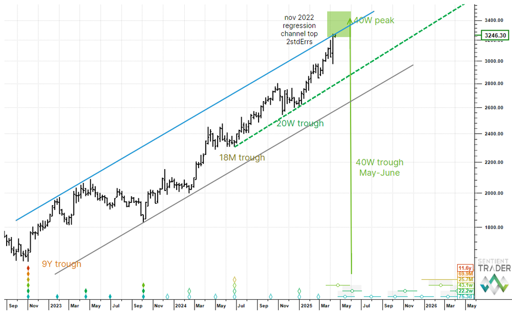 The macro landscape is very fluid at the moment, however the US Dollar and USDJPY look to be testing cycle trough zones (40 day and 80 day respectively). Perhaps the biggest call though is the impending 40 week cycle peak in Gold which we will track closely this and next week.
