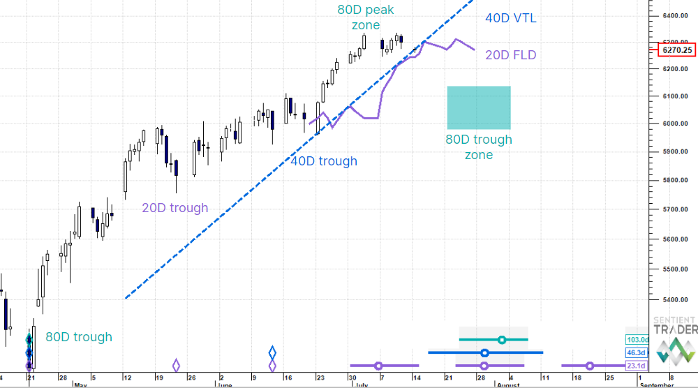 The US Dollar looks to have formed a major low (40 week cycle), but there is some conflict with EURUSD analysis. S&P500 E-minis strategically still higher (see last week's analysis) but near term we look to be in an 80 day cycle peak zone.