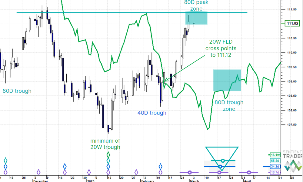 The US Dollar looks to have rounded a 20 week cycle trough and 10 year notes are in an 80 day cycle peak zone with downside resolution looming. Gold looks to have more near term downside as does the Euro. We have tentative counter-trend bottoms in Oil, SPX and Nikkei futures but need confirmation. We are looking for the next leg down in Copper and for Bitcoin to fade out.