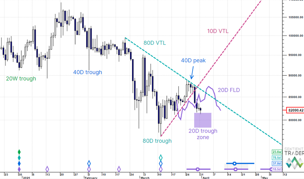 The US Dollar despite a pullback last week remains constructive. S&P 500 futures also took some technical damage, but we are looking for upside resolution, the same is true for Bitcoin. Gold continued to push higher, but we are actively stalking the 40 day cycle peak this week.