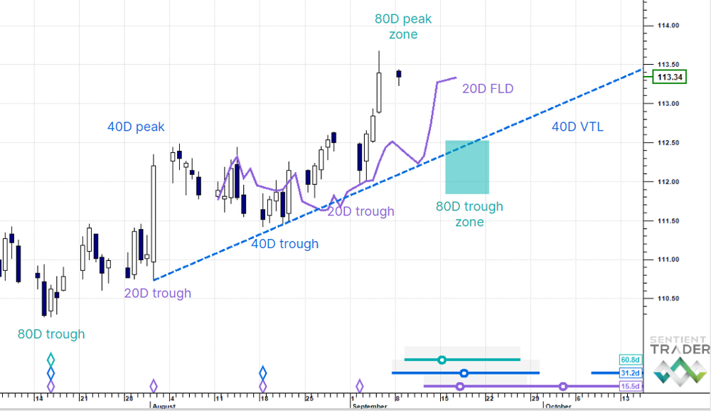 US Dollar one push down to 80 day cycle trough. Gold 40 day cycle peak zone. Oil looks like 80 day trough zone. USDJPY struggling. EUR last push then down. SPX e-minis question-mark over 80 day trough location. Bitcoin 80 day cycle trough a little lower but close. Treasuries near 80 day peak then down.