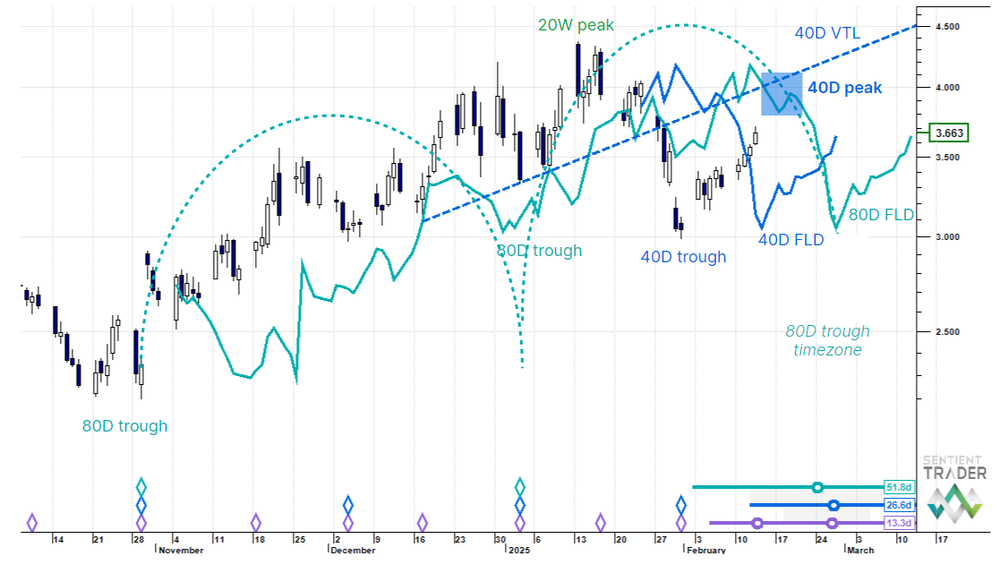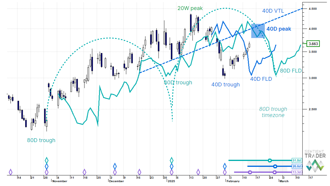 Natural Gas - counter-trend rally closing in on a 40 day cycle peak and key resistance.