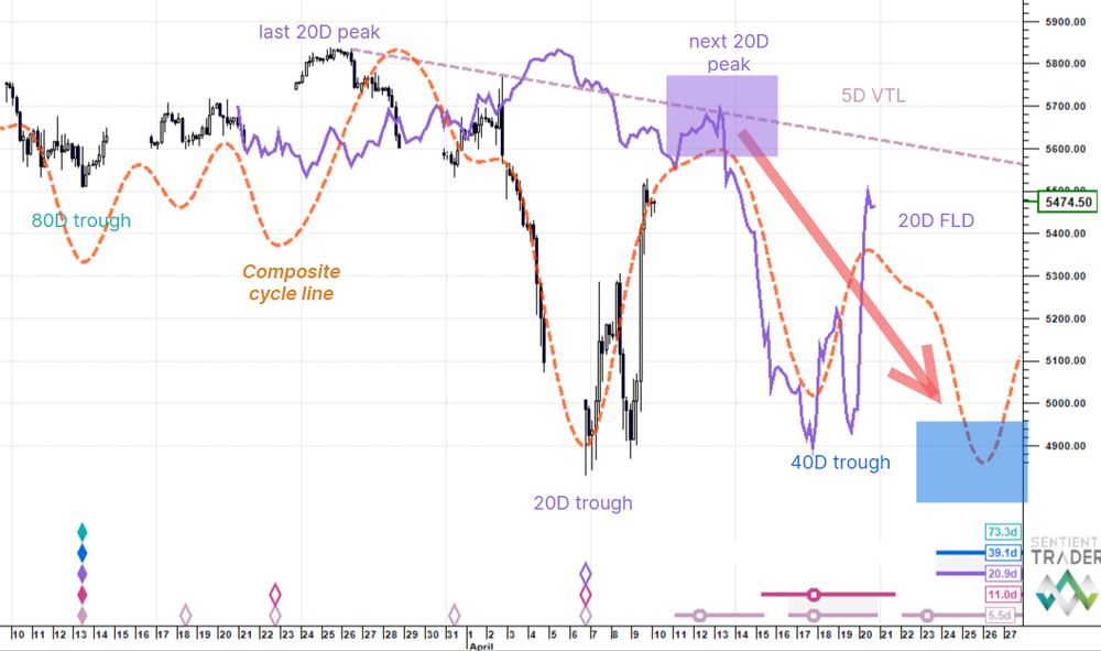 S&P 500 Futures - nearing a 20 day cycle peak, then assumption is down again.