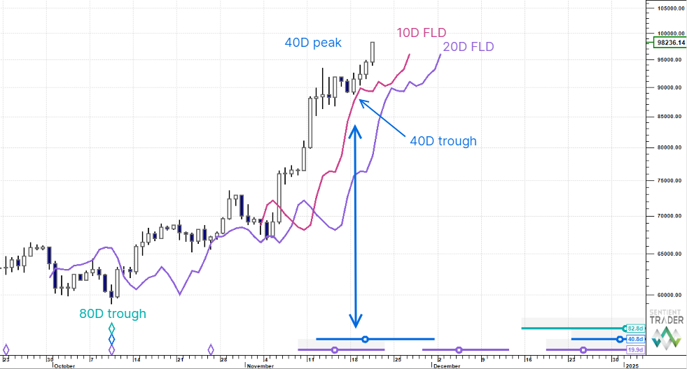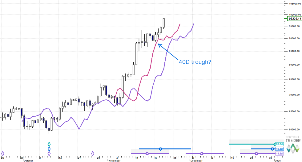 In Monday's Macro Outlook we were expecting a 40 day cycle trough to form before the bullish march to $100,000 continued. But Bitcoin couldn't wait ...