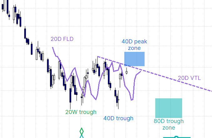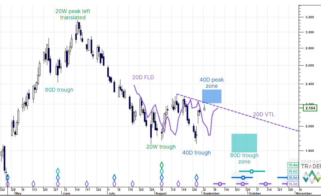 Natural Gas - counter-trend 40 day cycle is rising.