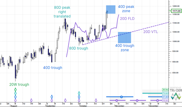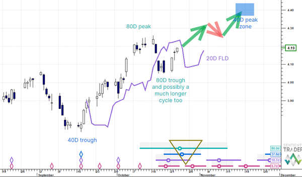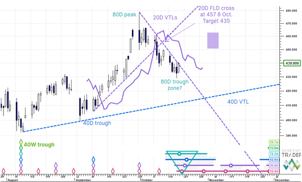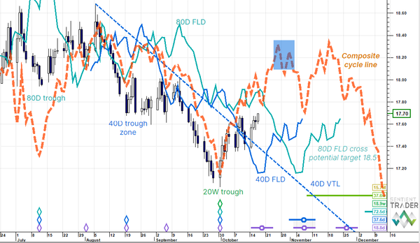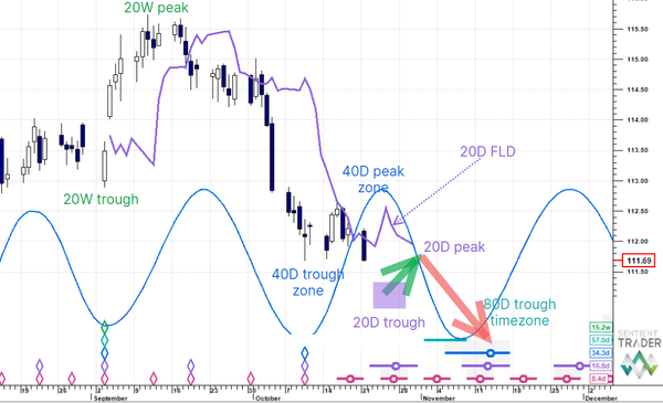 In Monday's macro outlook we were looking lower for the 80 day cycle trough. Price has continued to fall across the week, but with an uplift in China indices, we could be seeing a bottoming formation now. Time to consider targets and confirmation levels: ...