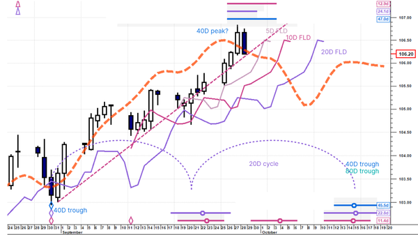 Analysis & Learning US Dollar Index update - 28 September 2023 The 40 day cycle may have just peaked ... 3 years ago • 1 min read