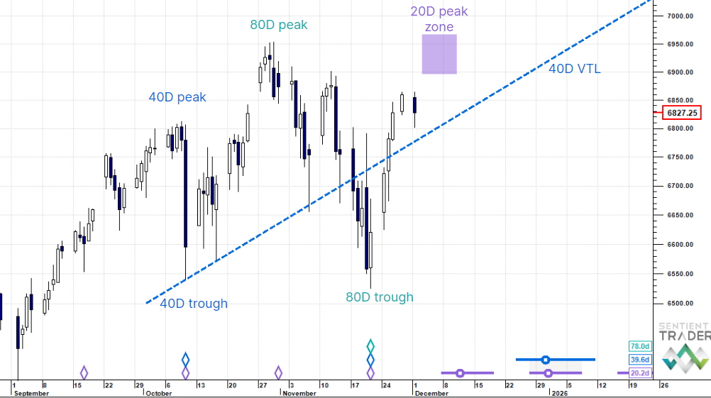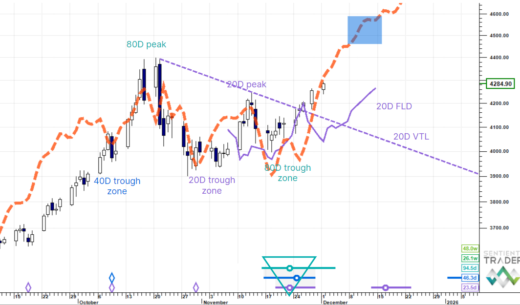 An 80 day cycle upswing is underway and we are looking for the next 20 day cycle peak.