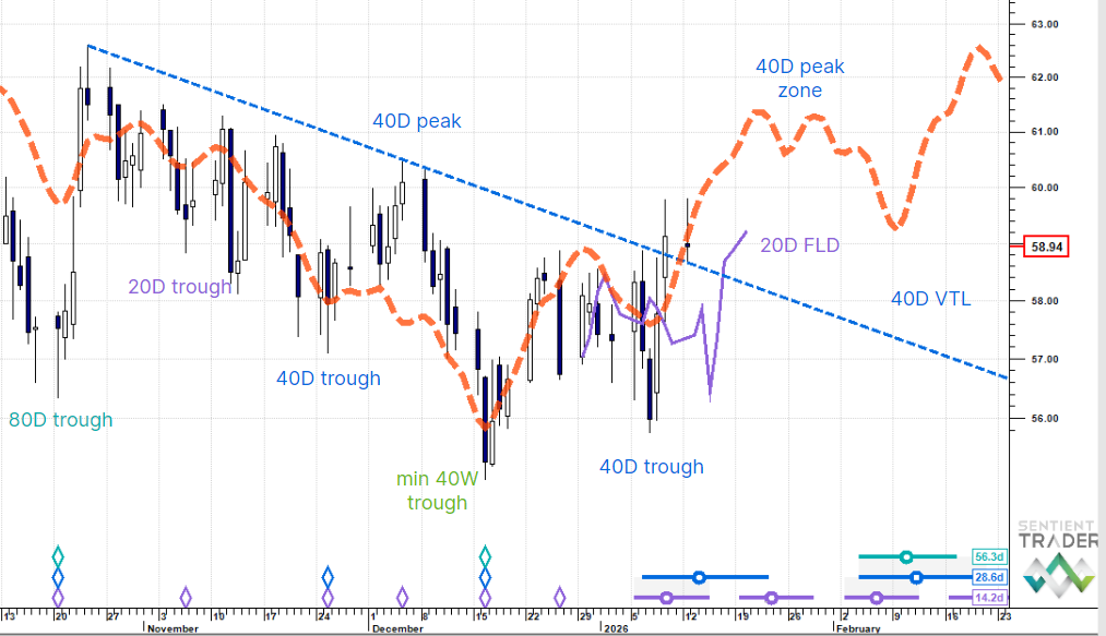 Gold -heading towards next 40 day cycle peak zone. Up.
