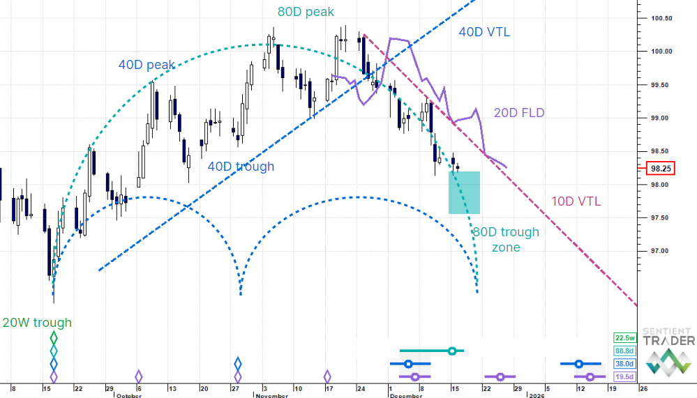 US Dollar - approaching an 80 day cycle trough. Up.