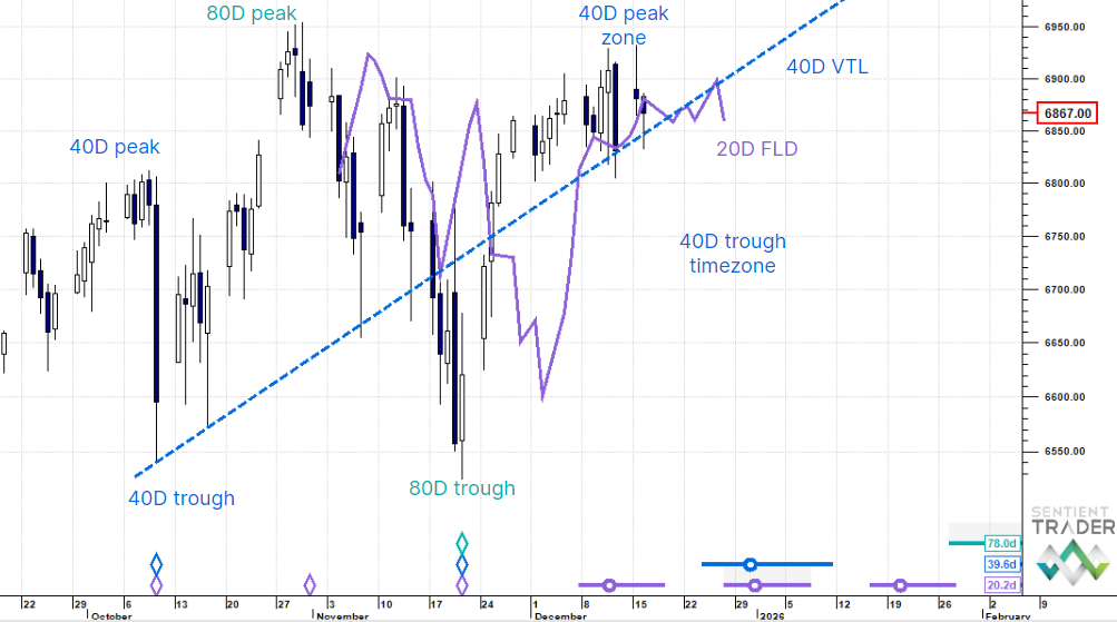 We look to be passing through a 40 day cycle peak zone with the next trough due early January.