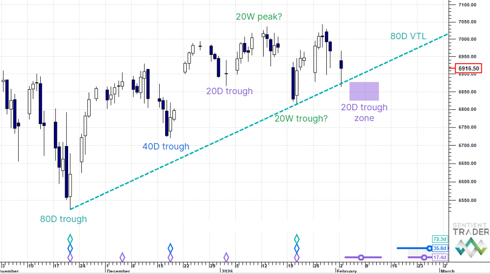S&P 500 E– Minis (ES) - looking for next 20 day cycle trough. Small Down.