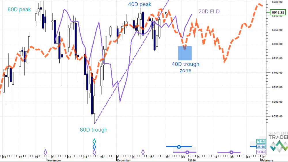 We look to be passing through a 40 day cycle peak zone with the next trough due early January.