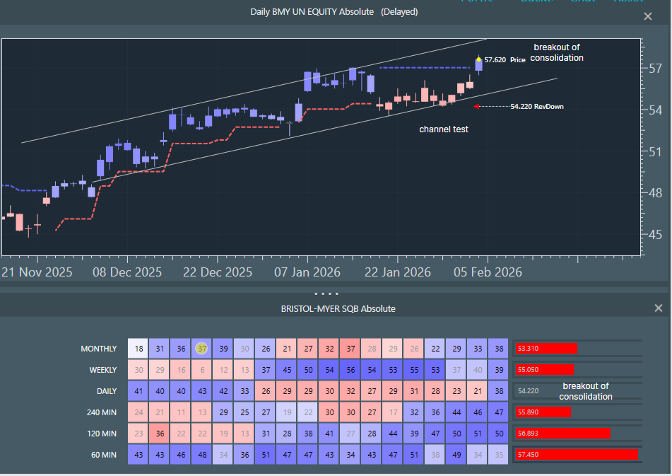Bristol Myers Squibb Co (BMY) - break out to up continuation.