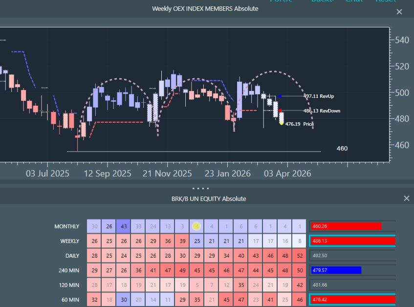 BRK/B (Berkshire Hathaway) - Down break/continue (-).