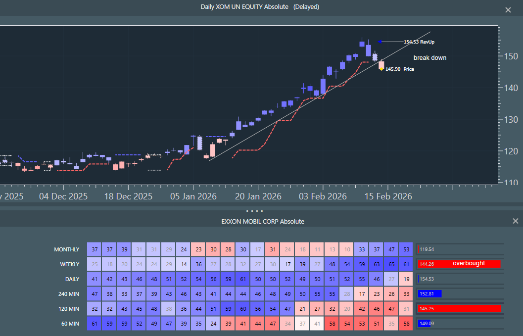 EXXON MOBIL CORP (XOM) - break down from intermediate term overbought. Down.